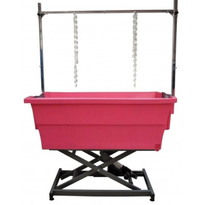 grotec eco Hundebadewanne, elektrisch höhenverstellbar von 40 cm bis 103 cm, L = 135 cm, B = 49 cm. Badewanne aus Kunststoff, Gestell aus Edelstahl, inkl. Halterung, Halteketten, rutschfester Bodenbelag, 2 Einstiege, 2 Bodenplatten für kleinere Hunde.